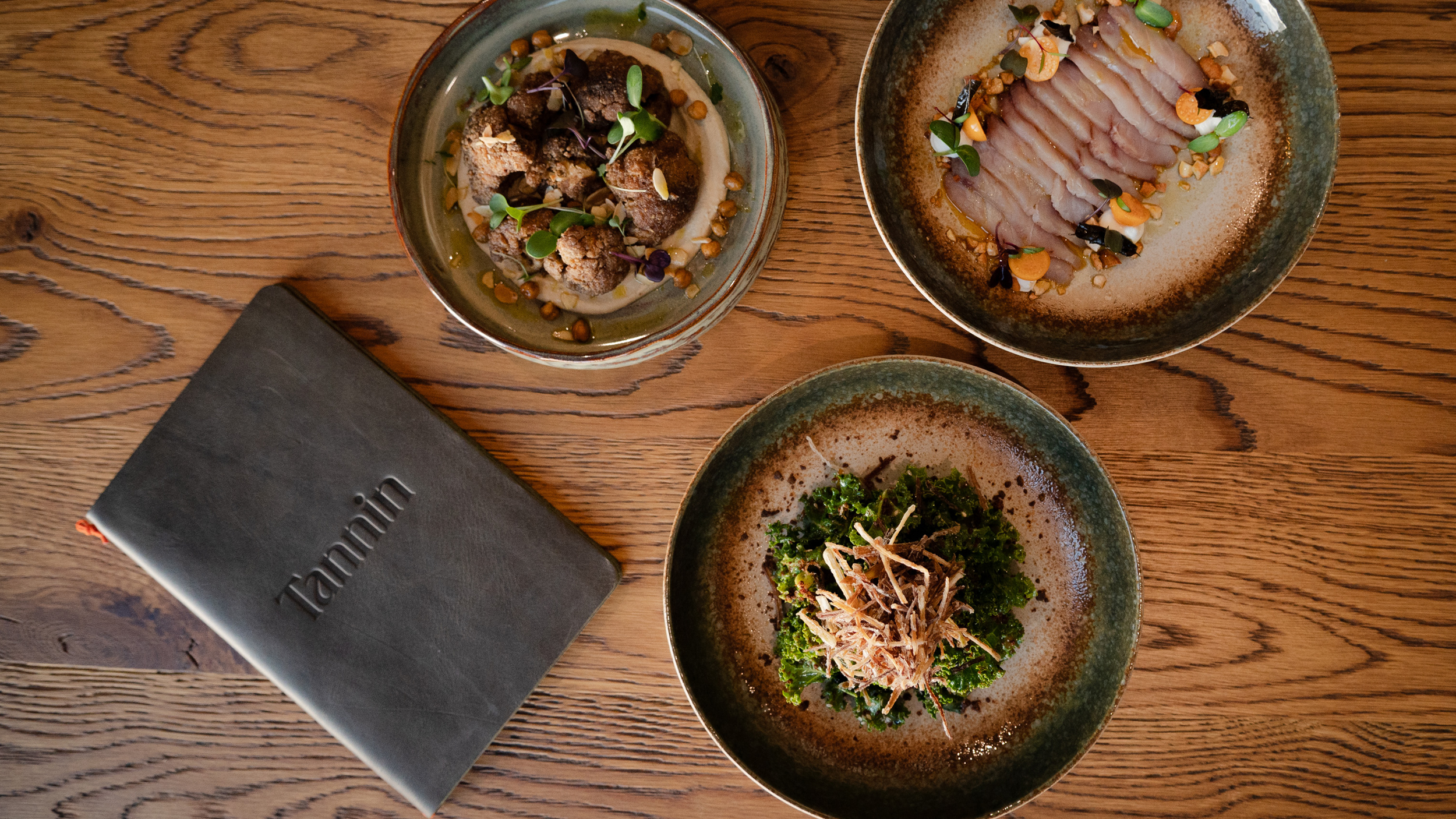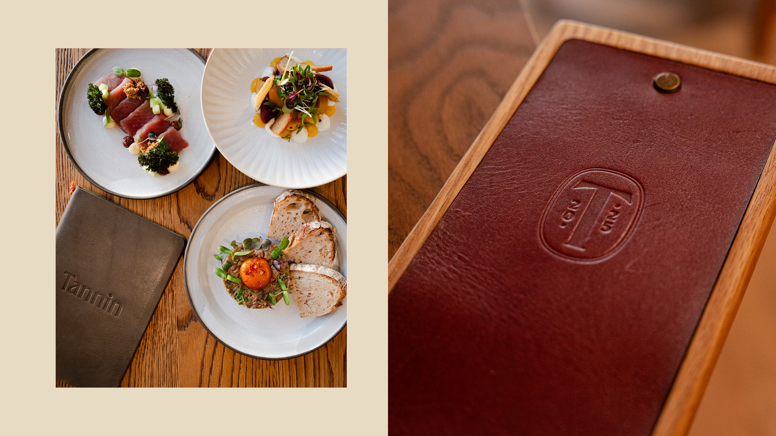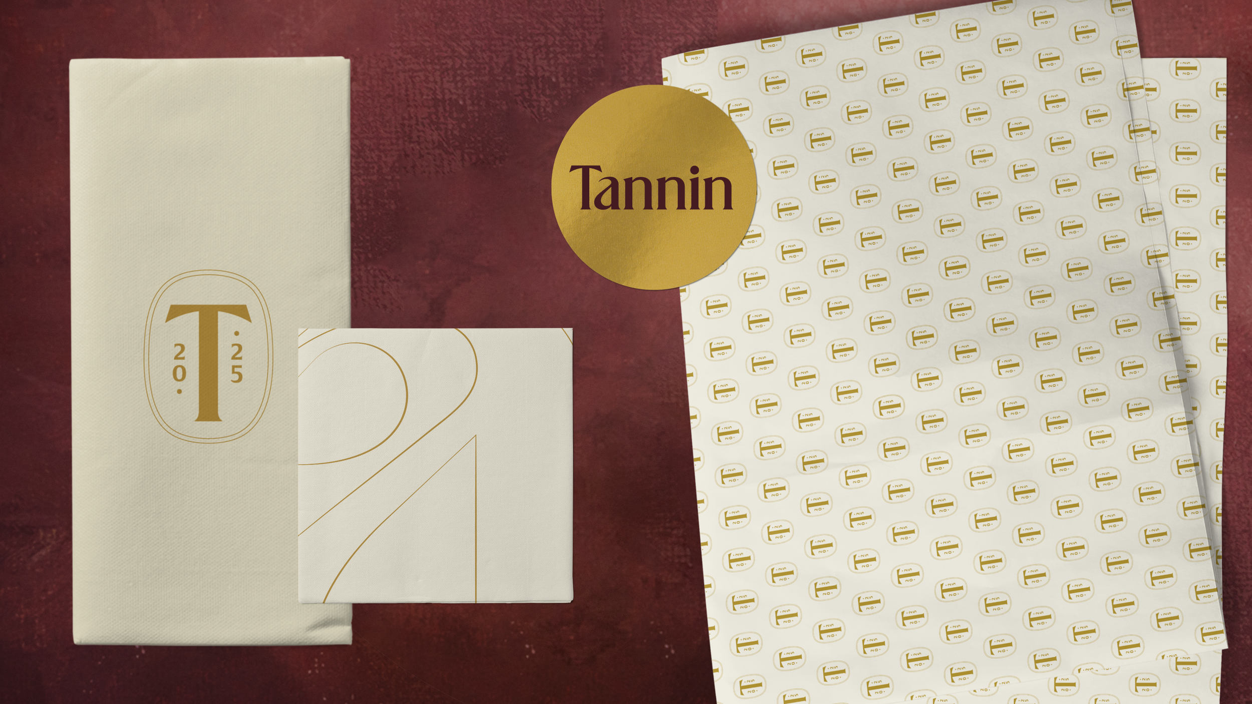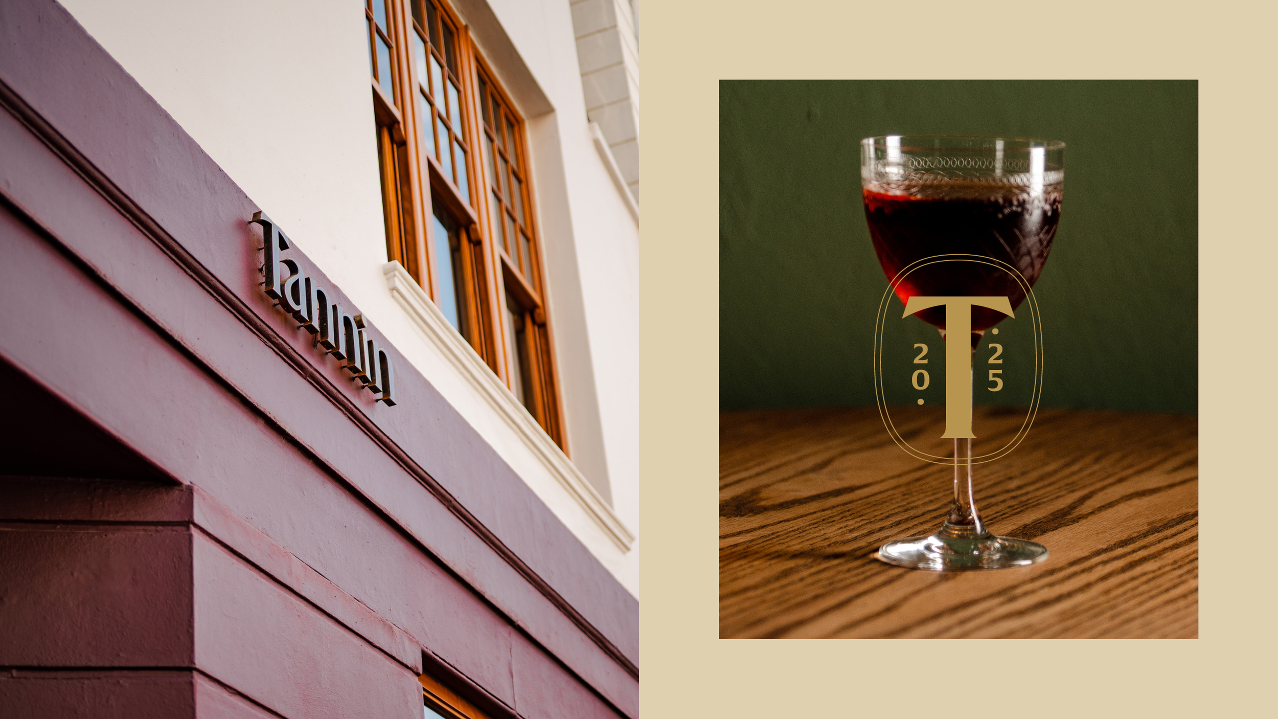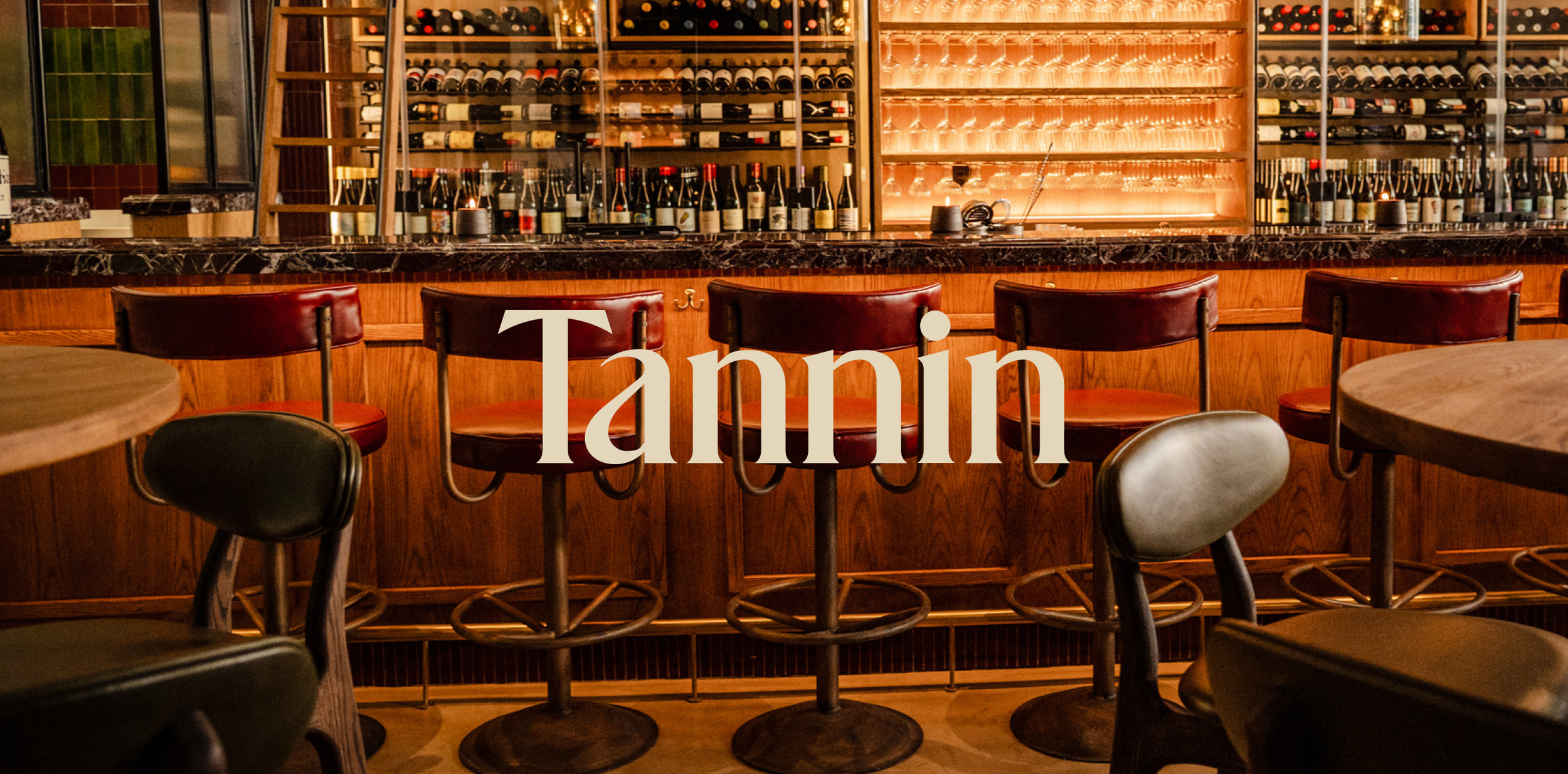 Tannin is a new wine bar and restaurant located on the iconic Bree Street in Cape Town. Spanning three levels connected by a striking, art-filled atrium, the space exudes warmth and sophistication. The brand identity embraces a classic, understated approach, designed to complement the refined, inviting, and contemporary atmosphere of the space.